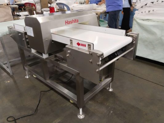 Model: MD-5513 Nhà sản xuất: Hashita Ngôn ngữ vận hành: Tiếng Anh Màn hình : LCD lớn dễ nhìn Thiết kế chống nước Phương pháp phát hiện kim loại: cảm ứng từ Khả năng kiểm tra: Sắt, đồng, thép không gỉ Chiều rộng khẩu độ: 550mm Chiều cao khẩu độ: 113mm Chiều rộng tối đa của băng tải: 500 mm Màu băng tải: màu trắng cấp thực phẩm Kích thước sản phẩm kiểm tra: + Chiều rộng tối đa: 500mm + Chiều cao tối đa: 95mm + Tốc độ vận chuyển: 0-30m / phút + Trọng lượng sản phẩm tối đa 15kg Vật liệu kết cấu máy: thép không gỉ SUS304 -Kích thước máy khoảng : 1600 x 830 x 950mm – Chiều cao của máy từ mặt đất đến bề mặt băng tải : 700mm (+50mm) có thể điều chỉnh -Độ nhạy máy (không sản phẩm): Fe=Ф1.0 mm; NFe=Ф1.2mm; SUS=Ф1.5mm Nguồn điện, điện áp cấp : AC 220V, 50-60HZ Hình thức báo động kim loại: âm thanh và báo động dừng lại với ánh sáng của đèn và bằng tải dừng lại. |